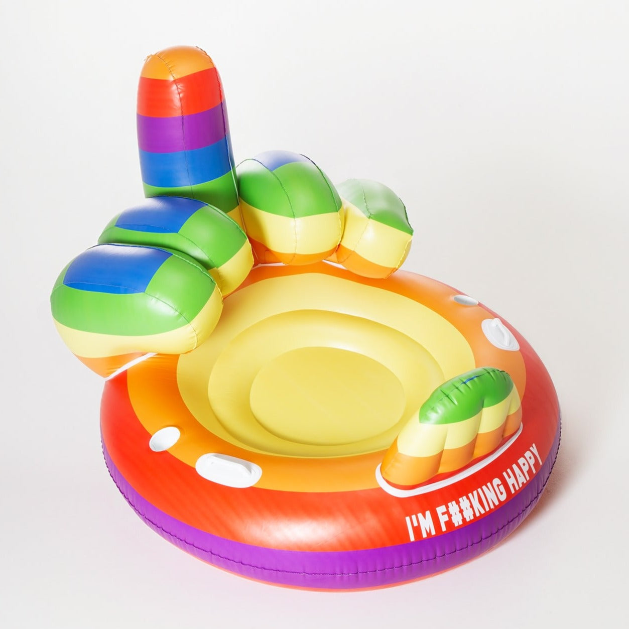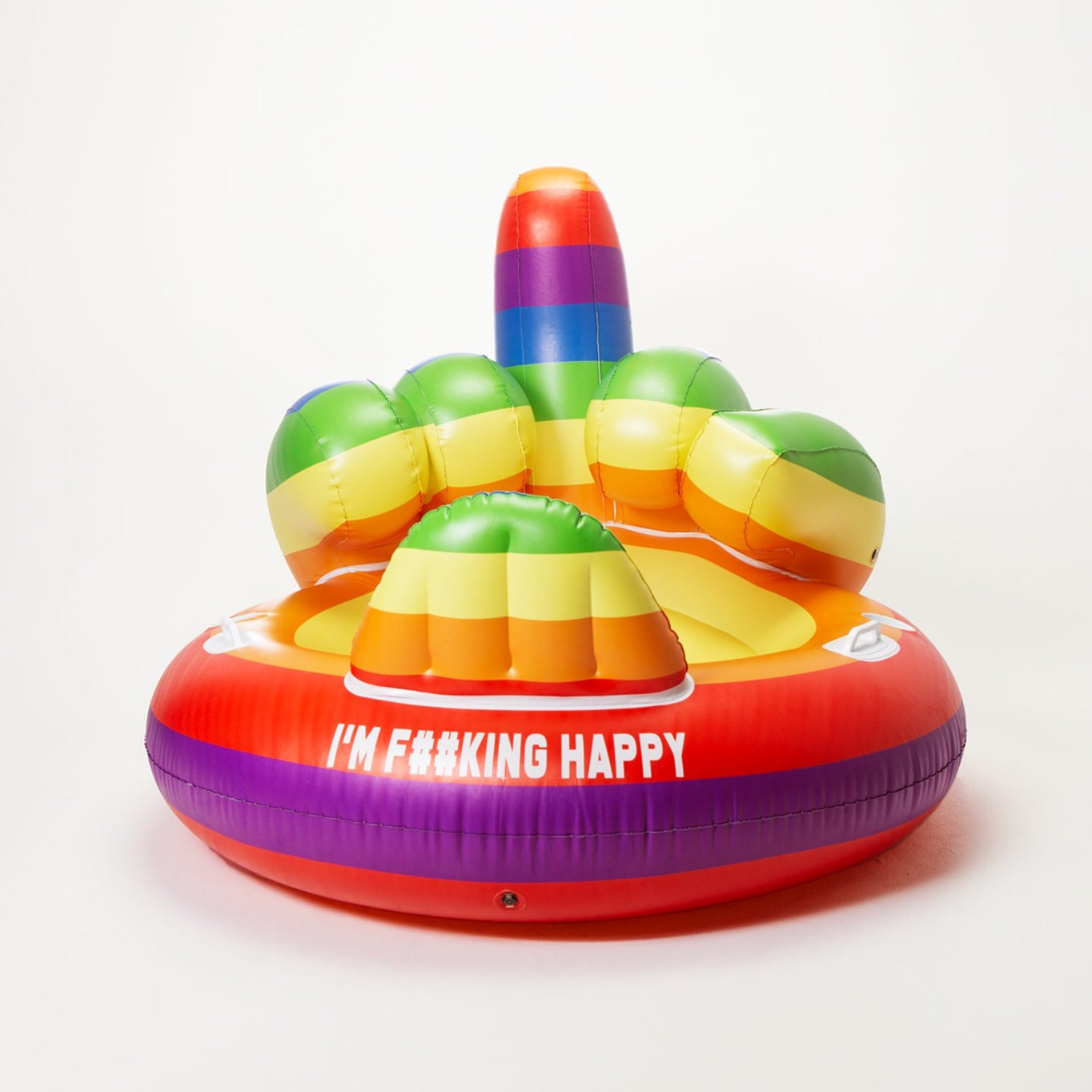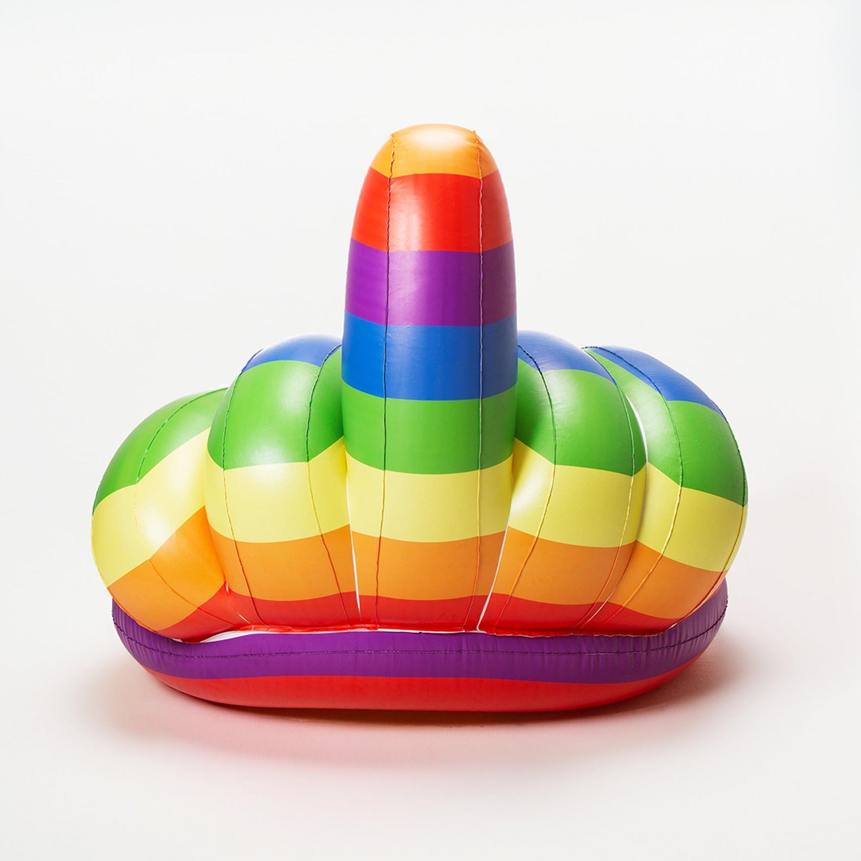 Introducing the Rainbow Middle Finger Floaty, a bold and hilarious addition to your poolside or beach escapades. Designed for individuals all ages, this floaty brings a touch of irreverent humor to any aquatic setting.